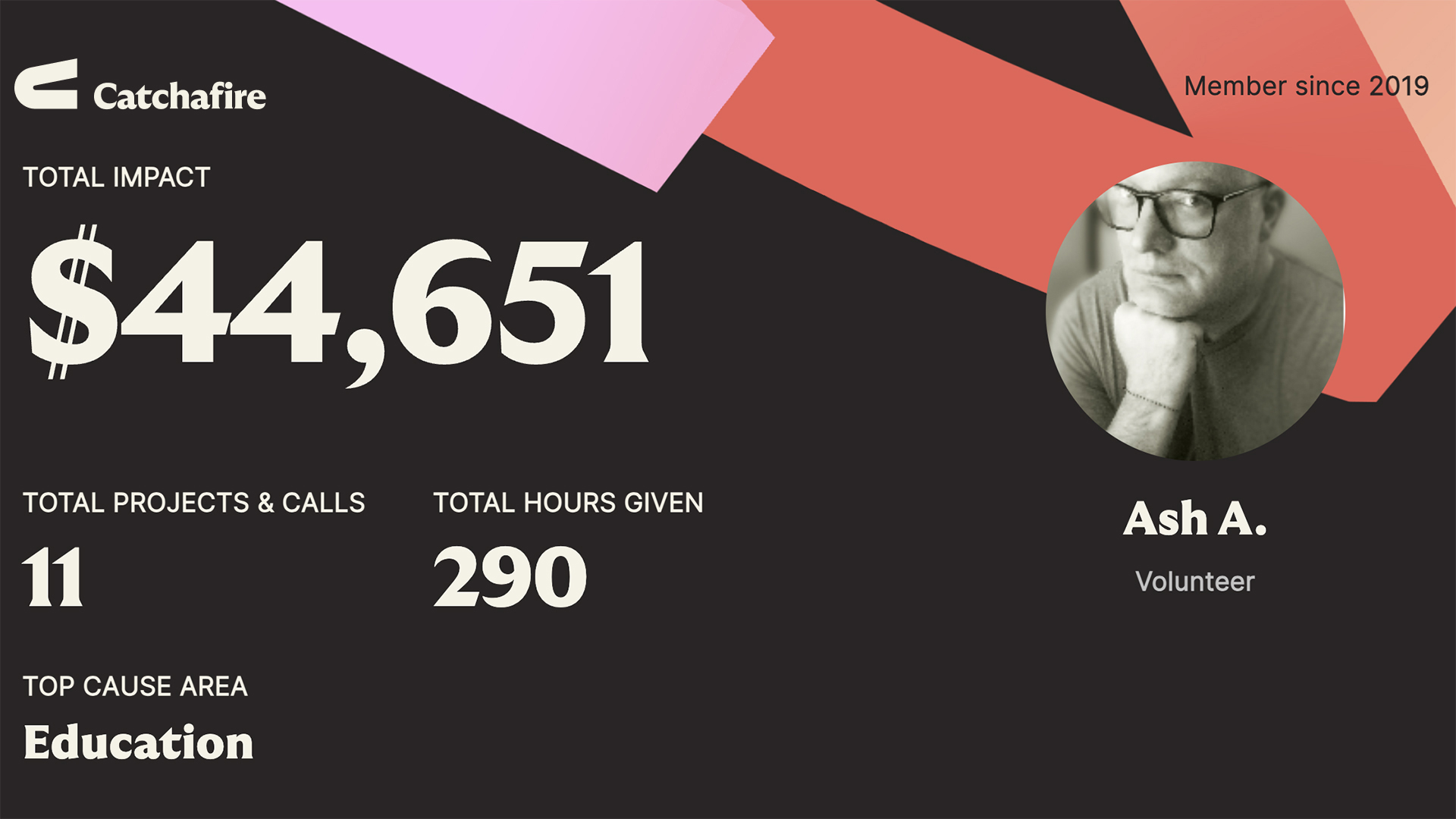 Volunteers want to give back to causes they care about, and a key point of Catchafire's product is the ability to give back from anywhere at anytime. I created social media and paid ads to attract new volunteers at key points throughout the year, to drive new volunteer sign ups and reengage volunteers who hadn't volunteered in weeks or months.