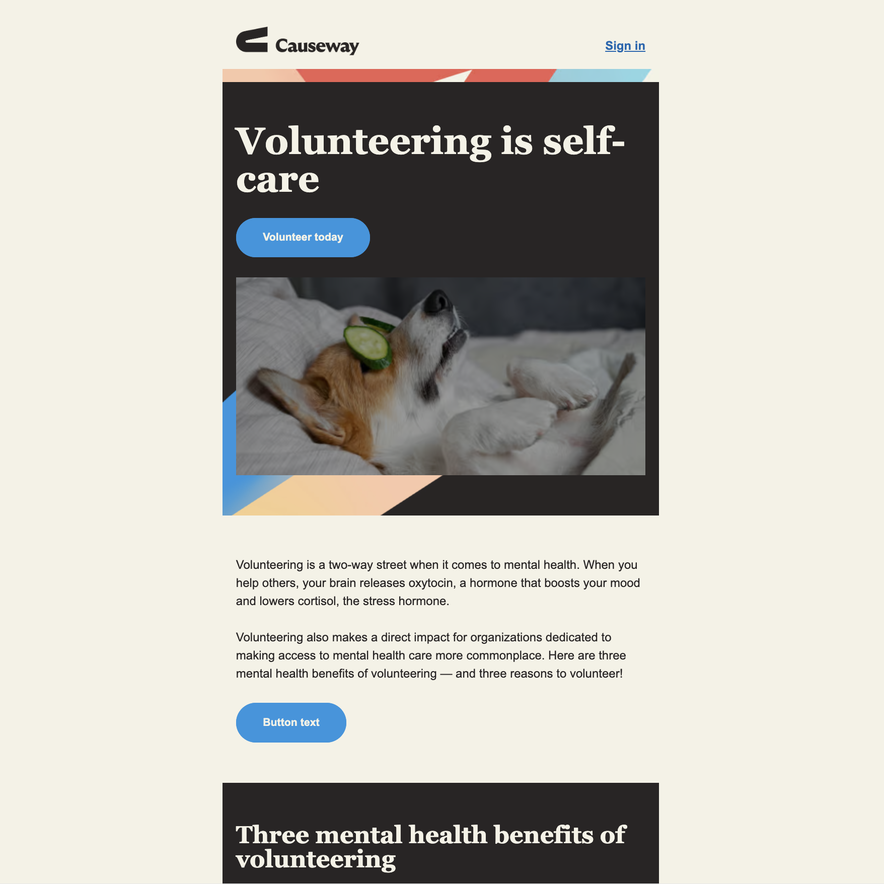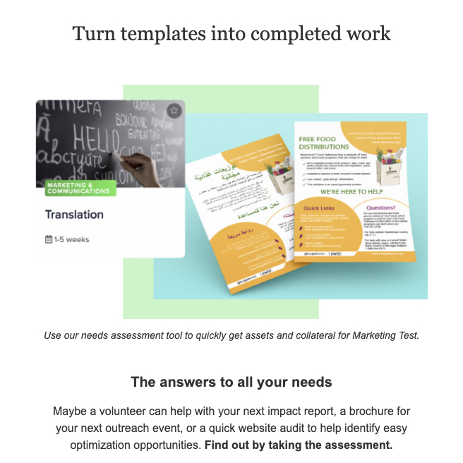 I wrote and designed hundreds of emails for nonprofits and volunteers and created landing pages as a resource for nonprofits to communicate the value of their free membership.