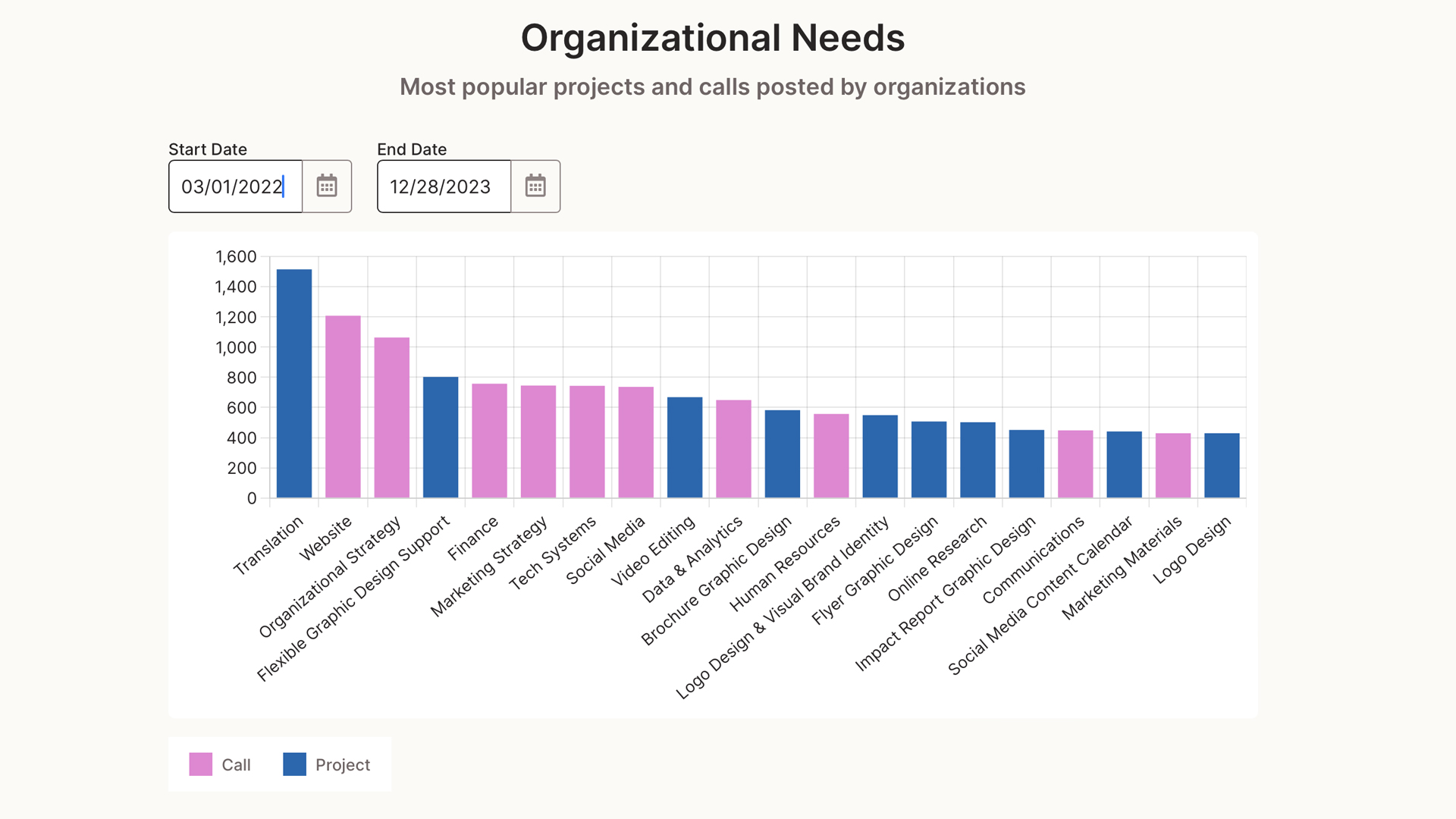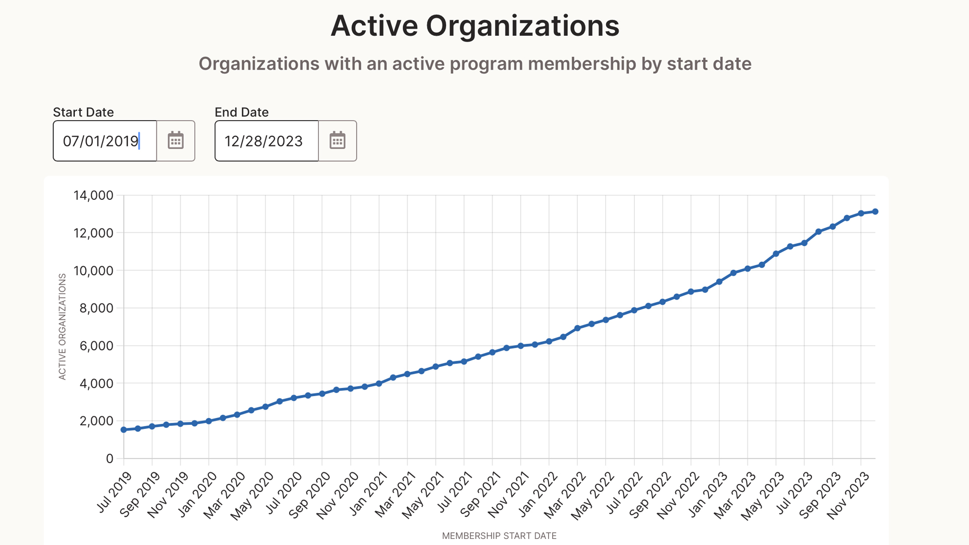 From 2019 to 2023, my strategy helped grow active organizations on Catchafire from under 2,000 to almost 14,000.